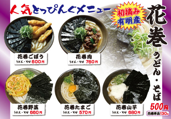 - 2月1日より季節限定「花巻うどん・そば」の販売を開始いたします。※ご好評につき完売いたしました。ありがとうございます。